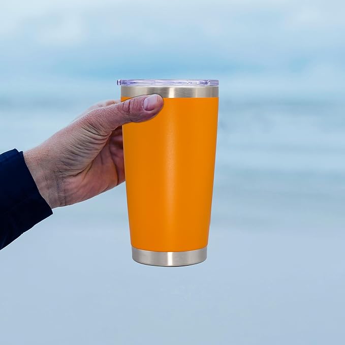 20 oz Tumbler Coffee Tavel Tumblers Bulk with Lid Stainless Steel Double Wall Vacuum Insulated Mug Powder Coated Cups fit Car Cupholder for Hot and Cold - Orange, 4Pack