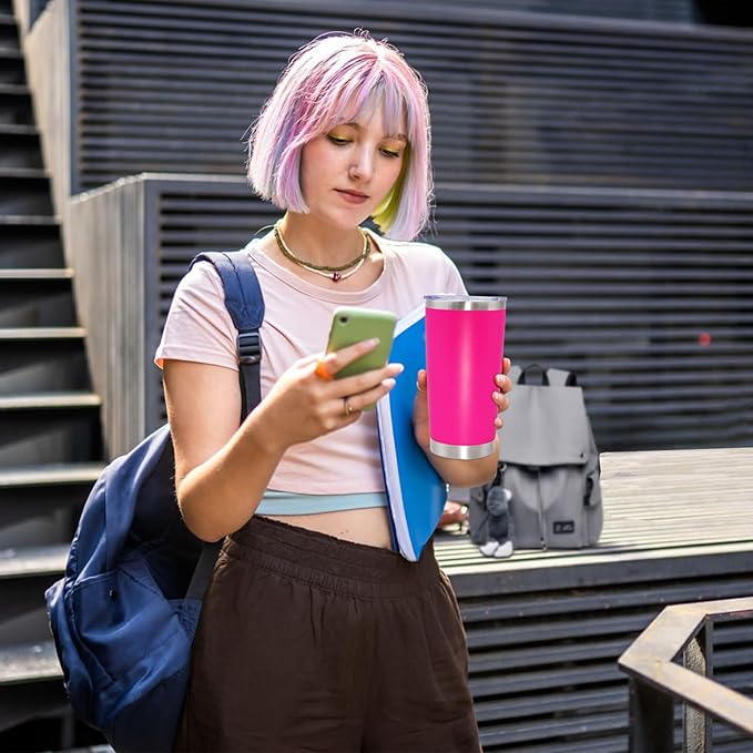 - POWDER COATED & EASY TO HOLD - The outside of the insulated travel tumblers is non-toxic frosted powder coating. There are 12 colors of powder coating, there is always a style you like. The frosted texture of the tumblers’ outer wall makes it easy for you to hold and the outer wall of the tumbler will never hang water droplets. In addition, Our insulated tumblers are also suitable for laser engraving, vinyl decals or color painting