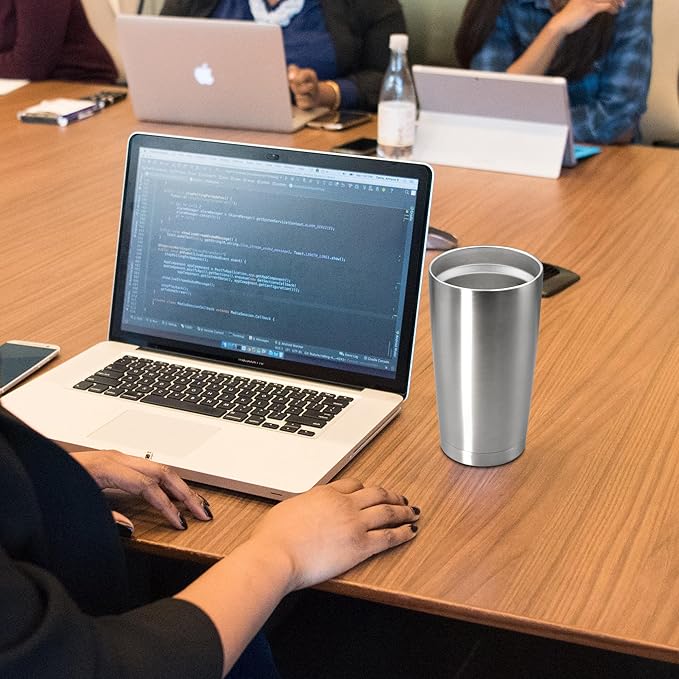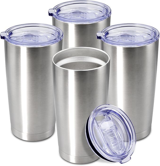 20 oz Tumbler Coffee Tavel Tumblers Bulk with Lid Stainless Steel Double Wall Vacuum Insulated Mug Powder Coated Cups fit Car Cupholder for Hot and Cold - Stainless Steel, 4Pack