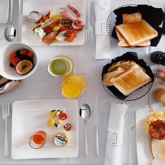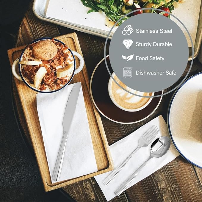 - 【Dishwasher Safe】 The total quantity of dinner kinves and dinner forks and dinner spoons is 12. They are all designed ergonomically, which has mirror polished and smooth edges for a comfortable feel. Meanwhile, this kitchen utensil set has a sturdy structure, so it can be used for a long time. Most importantly, the silverware sets are dishwasher safe, so you can just put them in a dishwasher for saving time in hand washing.