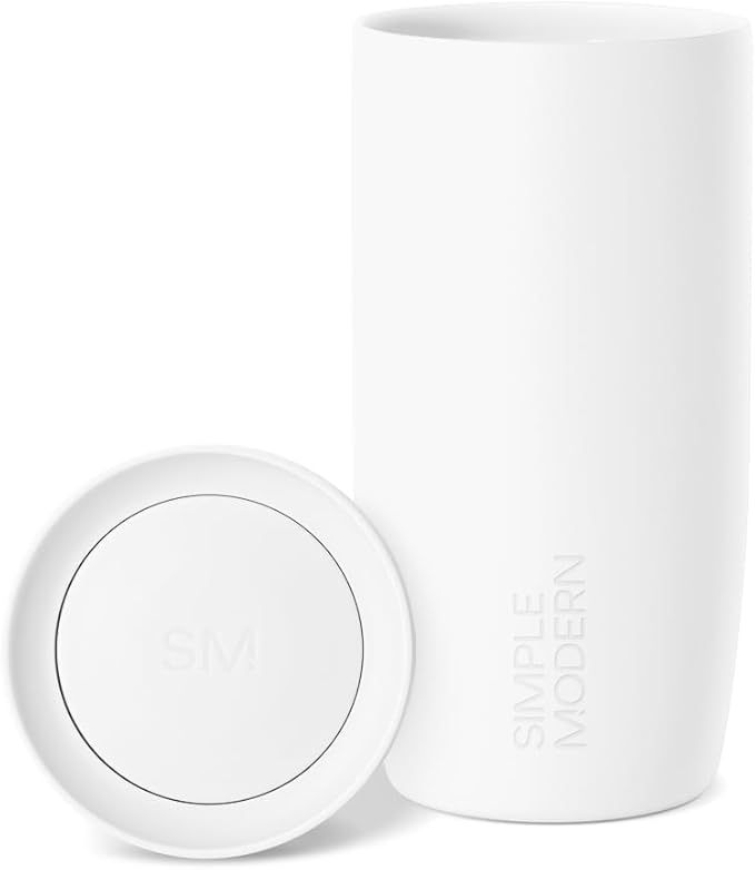 Simple Modern Travel Coffee Mug Tumbler with 360° Lid | Ceramic-Lined Insulated Stainless Steel Cold Brew Iced Coffee Cup Thermos | Gift for Women Men Her Him | Voyager Signature | 16oz | Winter White