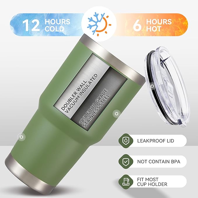 - Doubled-walled Tumblers: Cool Yoleb 30oz double-walled vacuum insulated tumbler, which keeps cold drinks for 12 hours and keep warm drinks for 6 hours, is ideal for outdoor activities or traveling long distances