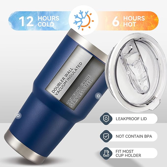 - Doubled-walled Tumblers: Cool Yoleb 30oz double-walled vacuum insulated tumbler, which keeps cold drinks for 12 hours and keep warm drinks for 6 hours, is ideal for outdoor activities or traveling long distances