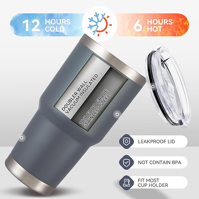 - Doubled-walled Tumblers: Cool Yoleb 30oz double-walled vacuum insulated tumbler, which keeps cold drinks for 12 hours and keep warm drinks for 6 hours, is ideal for outdoor activities or traveling long distances