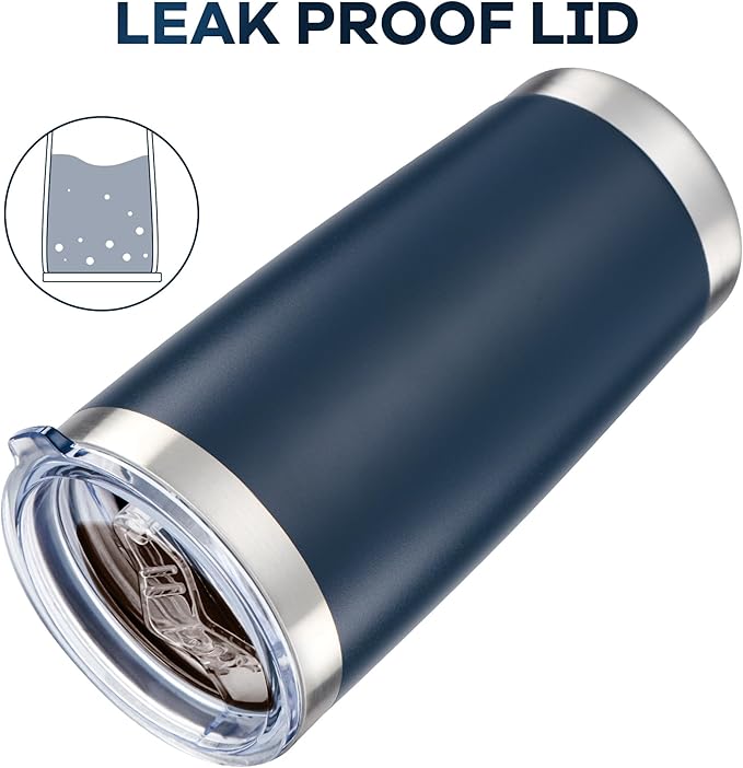 20 oz Tumbler with Lid Stainless Steel Insulated Tumblers Bulk Double Wall Vacuum Cups Powder Coated Travel Mug Keep Drinks Cold and Hot, Navy, 4 Pack