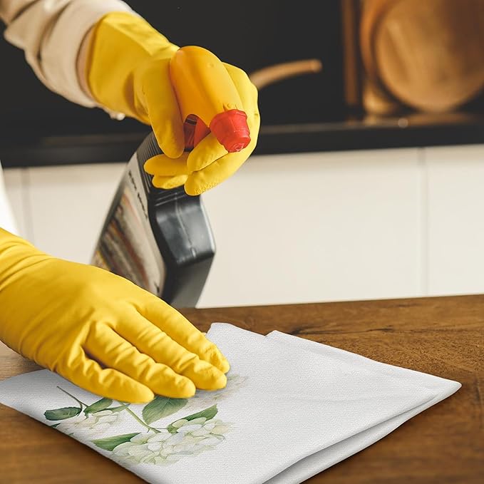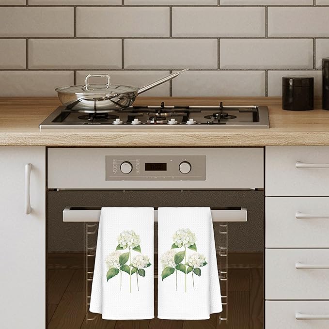White Hydrangea Flowers Floral Kitchen Towels Set of 2 - Flowers Decorative Hand Towels for Bathroom, White Hydrangea Decor Dish Towels for Kitchen, Floral Hand Towels, 16x24