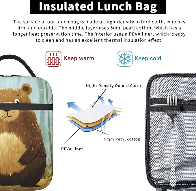 - Multifunctional: This reusable Bear lunch bag provides an attractive solution for many storage needs. It can also be used as a cooler, tote or camping bag to hold meals, snacks, drinks or simply as a carry-on bag.