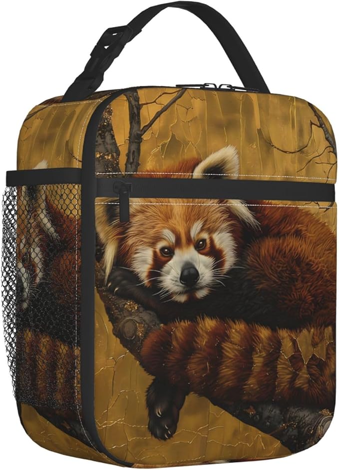Realistic Red Panda Print Insulated Lunch Box Gifts for Kids Adults Golden Autumn Background Design Reusable Portable Lunchbox Cooler Lunchbag for Work Picnic School Travel or Hiking