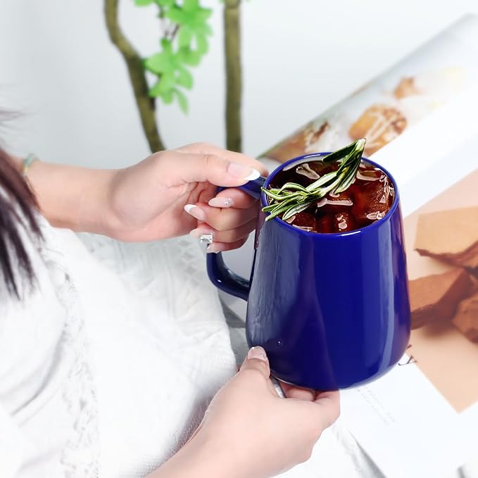 Smilatte 24 OZ Large Coffee Mug, Nice Ceramic Boss Tea Cup with Big Handle for Dad Men Women, Unique Style For Any Kitchen, Blue
