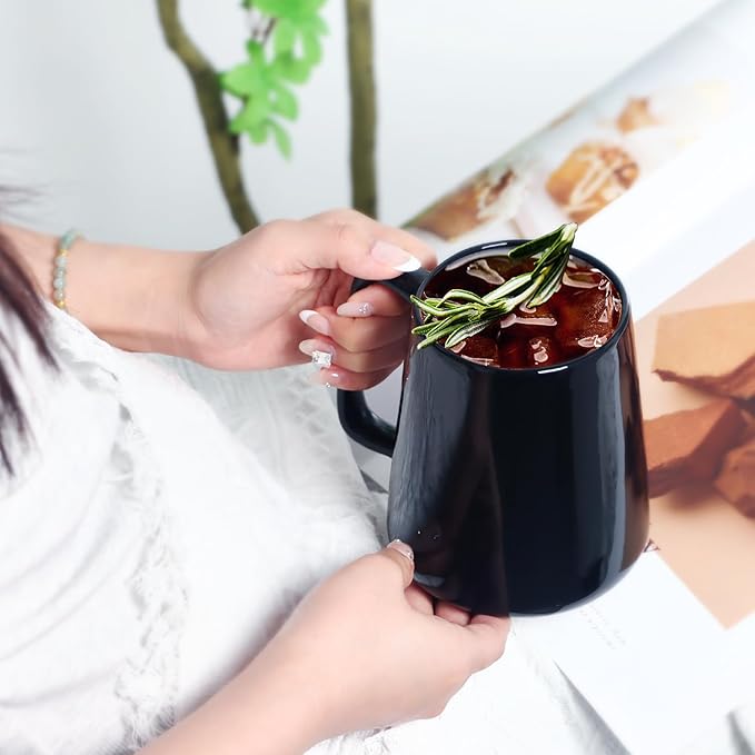 Smilatte 24 OZ Large Coffee Mug, Nice Ceramic Boss Tea Cup with Big Handle for Dad Men Women, Unique Style For Any Kitchen, Black