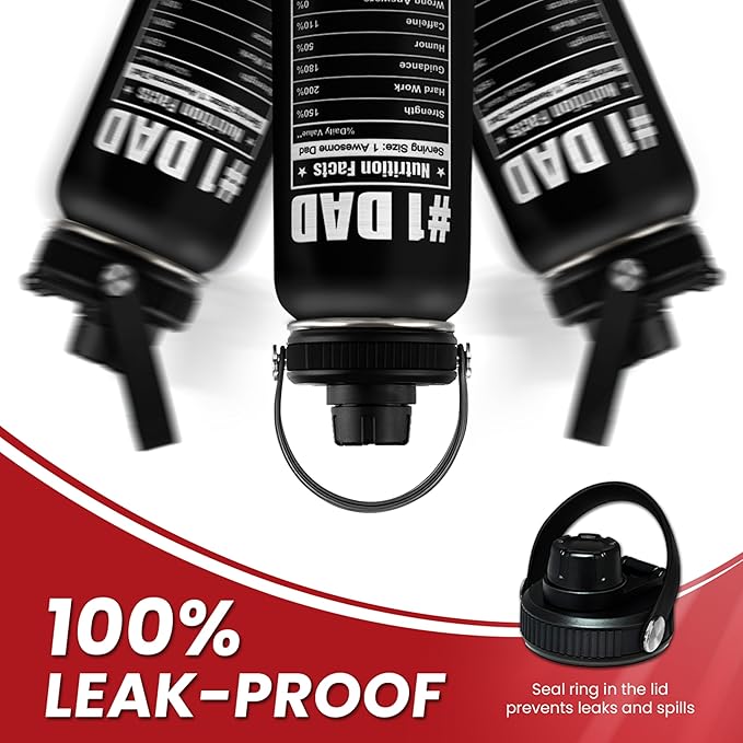 Best Dad Ever Water Bottle 32oz - Dad Bottle Stainless Steel Insulated Sports Bottles with Lid, Gifts for Father from Daughter Son, Dad Gifts for Birthday Christmas Fathers Day