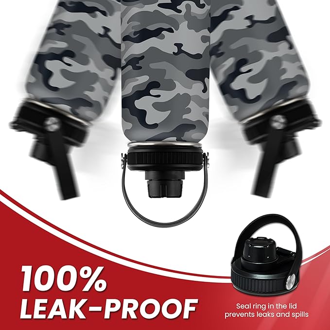 Camo Water Bottle - Camouflage Bottles 32oz Stainless Steel Insulated Sports Tumbler with Lid, Gifts for Men Veteran Hunting Lover Sport Outdoor Workout