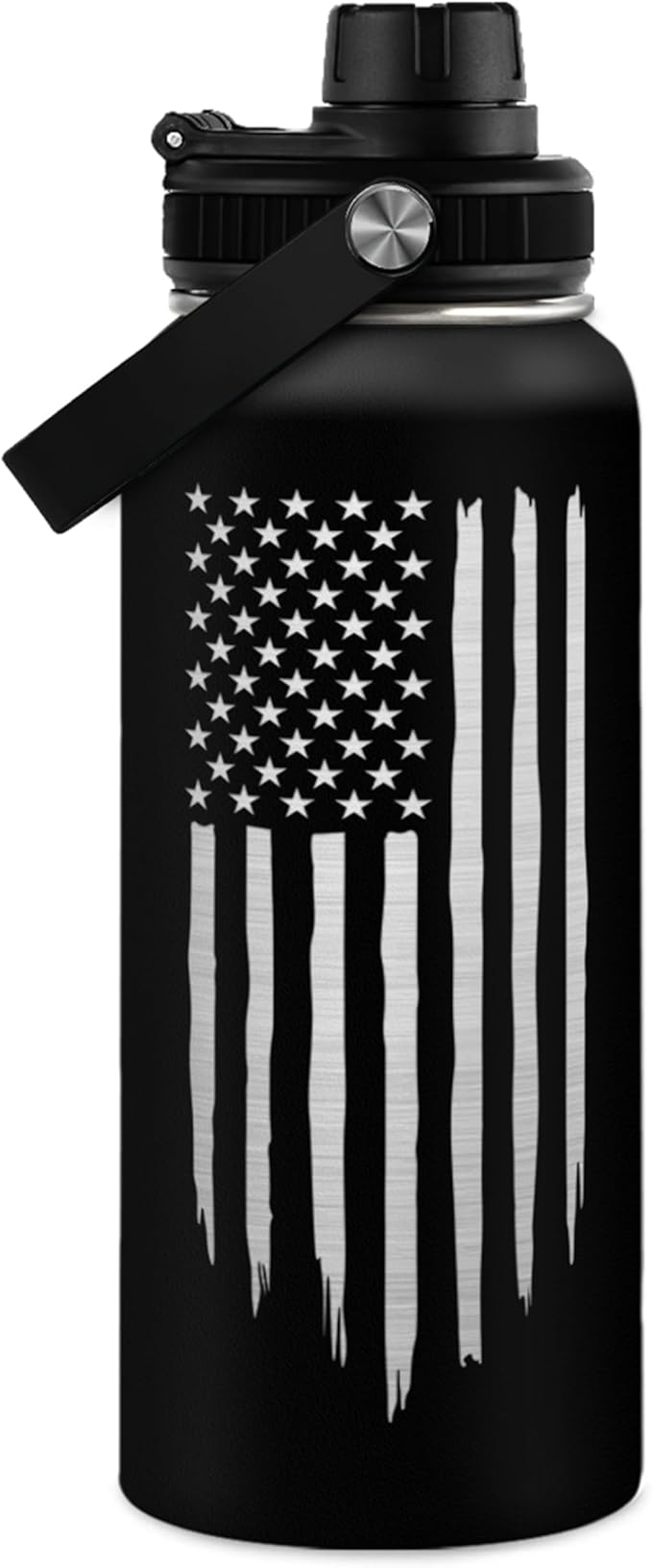 American Flag Water Bottle 32oz - SA Water Bottles Stainless Steel Insulated with Lid, America Gifts Ideas for Men Gym Sports Outdoor Workout