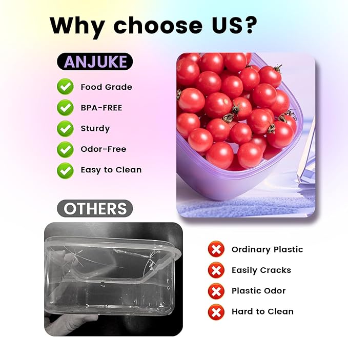 - Easy Care & ANJUKE Support: Containers are easy to clean and store — handwash lids recommended; container bodies are dishwasher-safe (top rack).