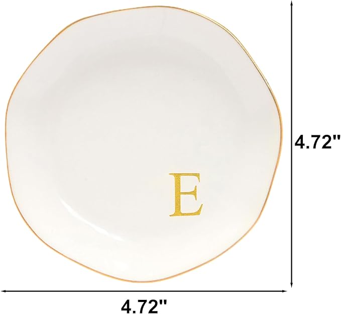 Ceramic Jewelry Tray Initial Ring Dish Personalized E-Monogrammed Engagement Wedding Gifts, for Birthday Mother's Day Christmas for Women, Ceramic White 4.75" (E)