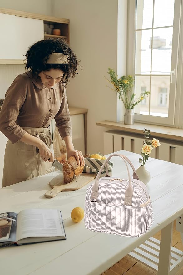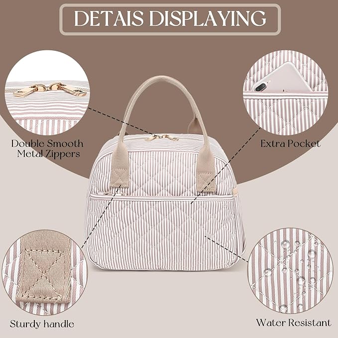- 【FASHION ITEMS】The front of this lunchbox is designed with quilted. Simple and elegant design is a great item to pair with different clothes every day. It can blends in with your attire and isn’t too flashy or tacky. This bag looks good with purse and briefcase.