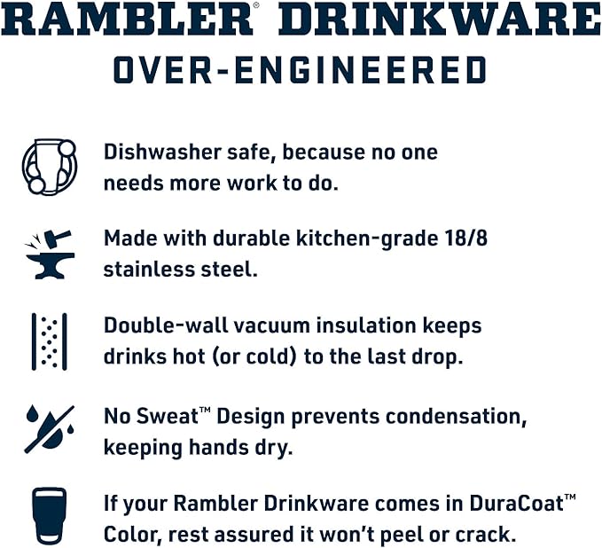 - DOUBLE-WALL VACUUM INSULATION - Keeps cold drinks cold and hot drinks hot until the last sip, and the No Sweat exterior