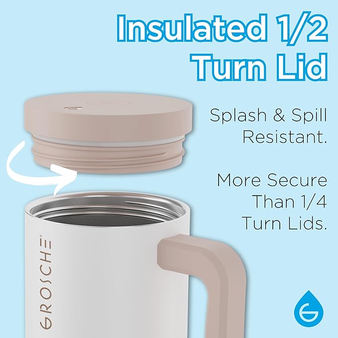 GROSCHE ASPEN 32 oz Tumbler with Handle and Straw. Extreme Insulation, Classy Design, Built to Last Insulated Stainless Steel Tumbler with Handle, Lid and Straw - Cream White