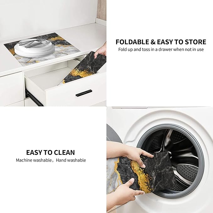 Black Gold Marble Dish Drying Mat for Kitchen Counter Gold and Black Grey Dish Drainer Rack Mats 16x18 Inches Absorbent Reversible Cute Drying Pad