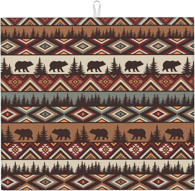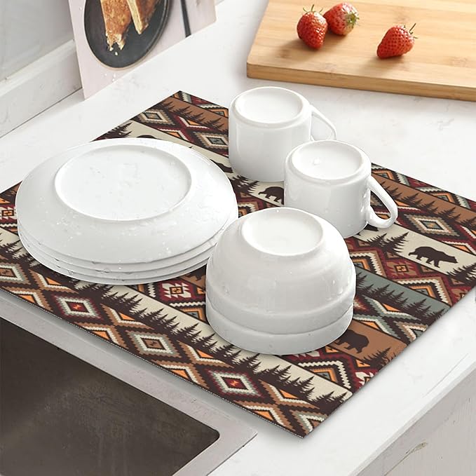 Vintage Rustic Dish Drying Mat for Kitchen Counter Bear Mountain Dish Drainer Rack Mats 16x18 Inch Absorbent Reversible Drying Pad Black
