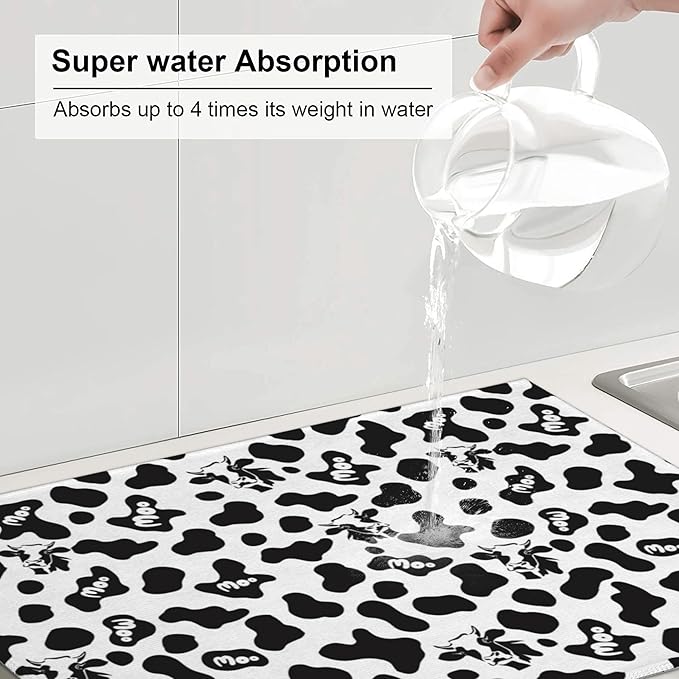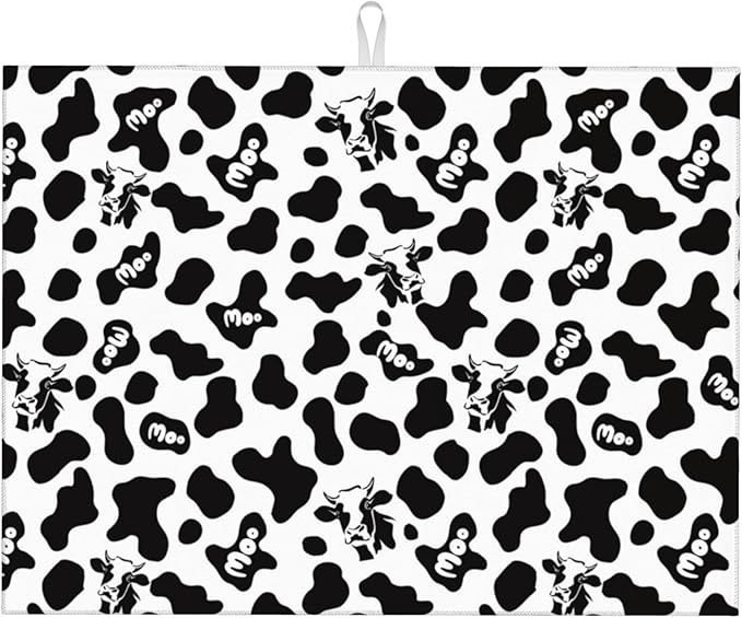 Black White Dish Drying Mat for Kitchen Counter 18"x24" Cow Print Dishes Pad Dish Drainer Rack Mats Microfiber Washable Absorbent Kitchen Decor