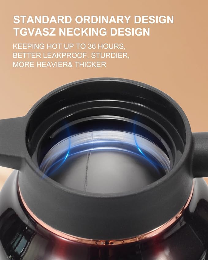 - HEAVIER (2.26 P) AND THICKER & DURABLER TERMOS PARA CAFE >>>>Updated hot water dispenser is made from made from a copper-plated thermal insulation liner and internal and external double-walled 304 stainless steel vacuum . The carafe coffee’s weight is 2.26 P. This coffee thermos carafe are rust-proof and non toxic, Perfect for hot and cold beverages, such as coffee, tea, milk, juice, water and more...