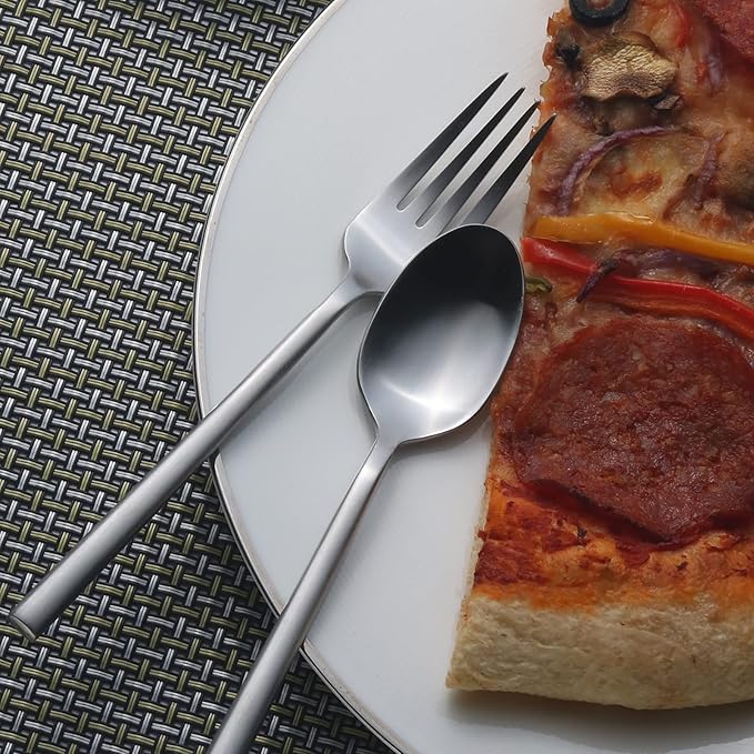 - Modern & Stylish Design: Embrace modern elegance with our silverware set. Its classic round handle shape with satin finish provides a natural and elegant design, and the smooth, silk surface without grain makes it easy to clean. It's a perfect match for those seeking a modern silverware set, a rustic silverware set, or even a unique flatware set