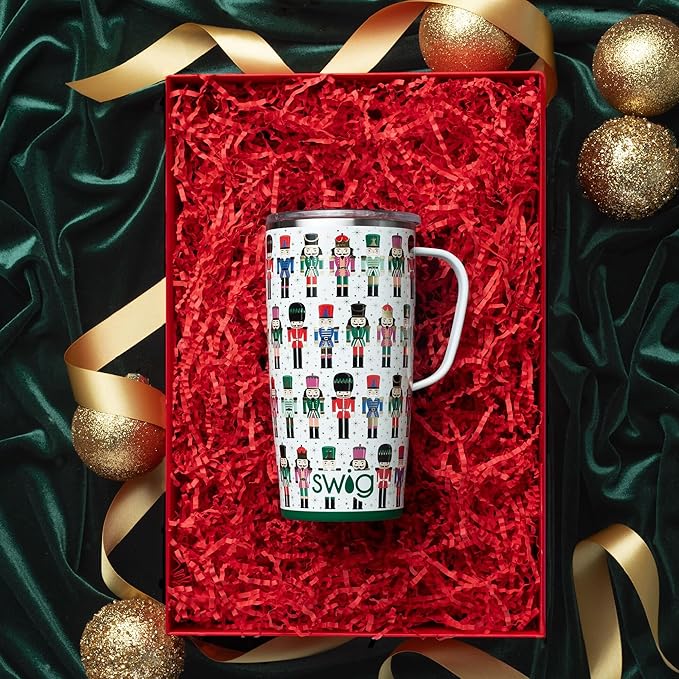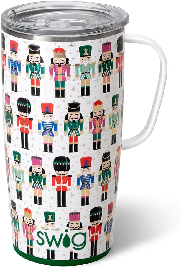 Swig Life 22oz Travel Mug, Insulated Tumbler with Handle and Lid, Cup Holder Friendly, Dishwasher Safe, Stainless Steel, Travel Coffee Cup, Insulated Mug (Classic Nutcracker)
