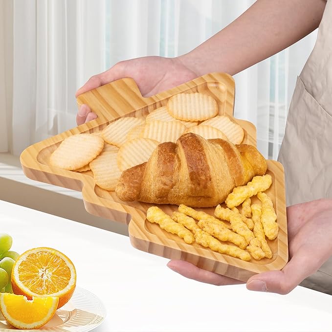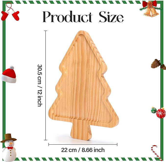 - 【Unique Christmas Tree Shape Design】The design of the tray is inspired by the classic Christmas tree shape, bringing a strong festive atmosphere. Size 30.5*22CM wooden tray, its unique shape is not only beautiful and generous, but also adds a different Christmas element to your dining table or home decoration.