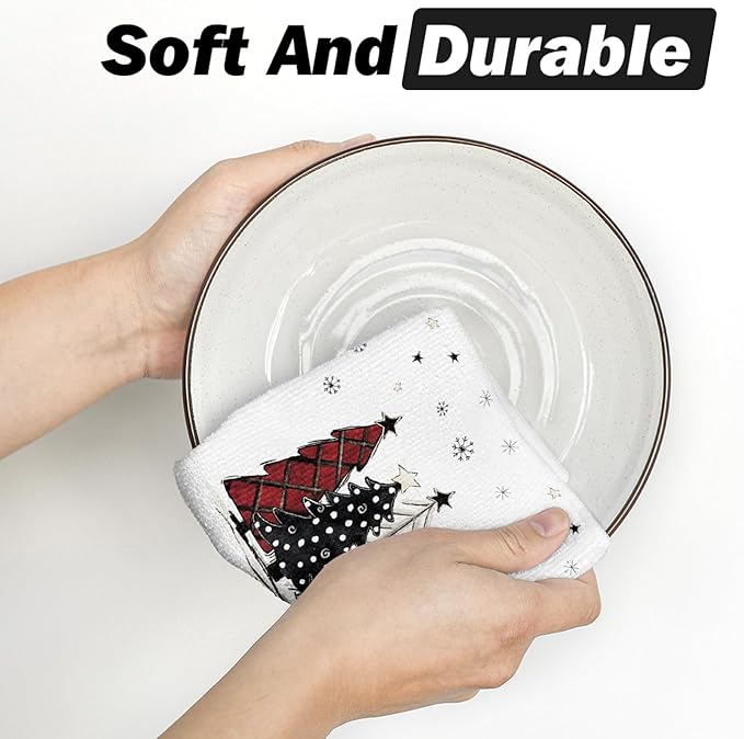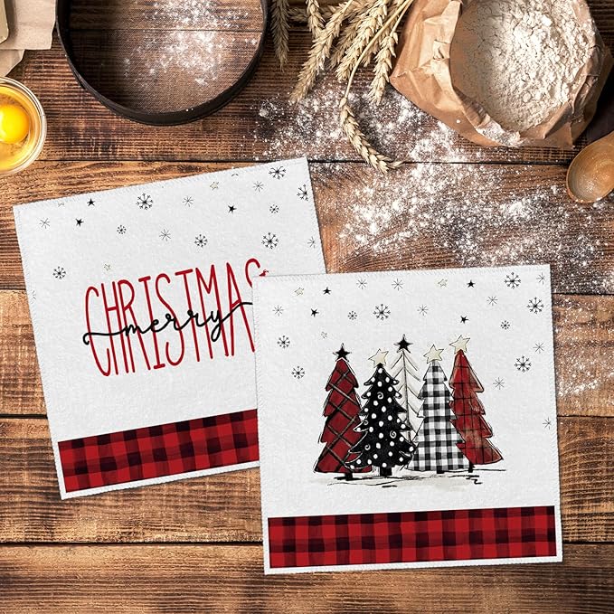 Artoid Mode Red Black Buffalo Plaid Snowman Xmas Trees Christmas Kitchen Towels Dish Towels, 10x10 Inch Daily Seasonal Winter Decoration Hand Towels Set of 4