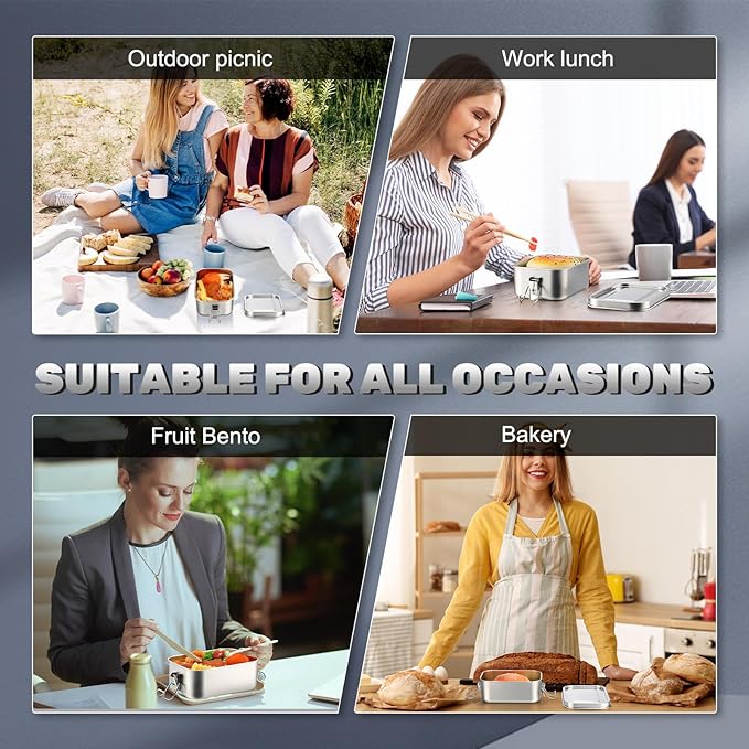 - Lockable Clips for Leak Proof: the metal lunch container is designed with lockable clips that firmly secures the lid in place, avoiding leaks and spills, even when you're outside; This creates a reliable and practical food storage solution, allowing you to pack anything from saucy curries to juicy fruits without any leaks or messes