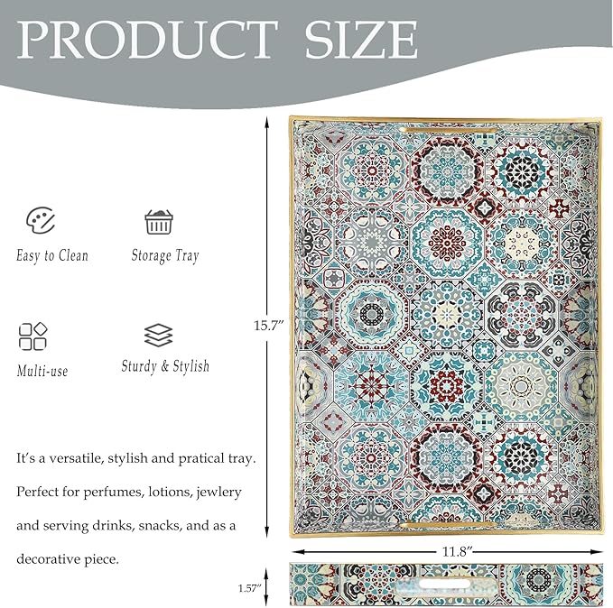- Versatile & Stylish Design: Spsyrine serving tray with handles is perfect for any setting – from coffee tables to kitchen counters and ottomans. Use it for decoration, serving, or as a centerpiece