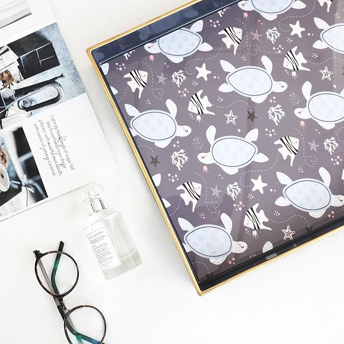 Spsyrine Decorative Serving Tray with Handles, Blue Lacquered Coffee Table Tray for Ottoman, Rectangle Waterproof Platters for Centerpieces, Parties, Living Room, Kitchen Counter Organization Turtle