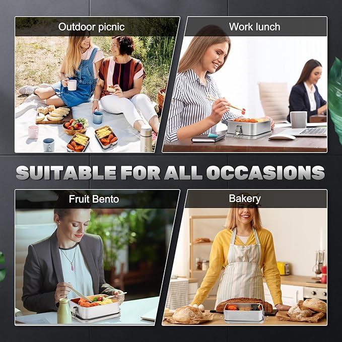 - Lockable Clips for Leak Proof: the metal lunch container is designed with lockable clips that firmly secures the lid in place, avoiding leaks and spills, even when you're outside; This creates a reliable and practical food storage solution, allowing you to pack anything from saucy curries to juicy fruits without any leaks or messes