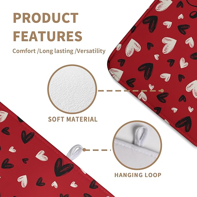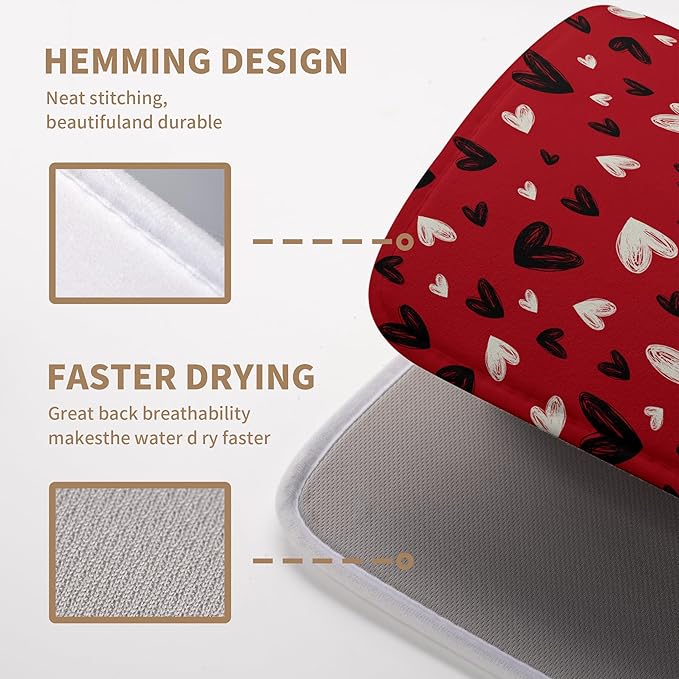 - [Quick Absorption]: Made of absorbent material, our valentine drying mat Red Black Love Heart dish dryer mat for kitchen absorbs water stains quickly, keeping your table top dry and clean, avoiding water stains and leaks, providing you with a pleasant and dry dining or working experience.