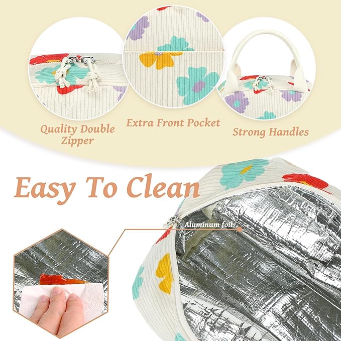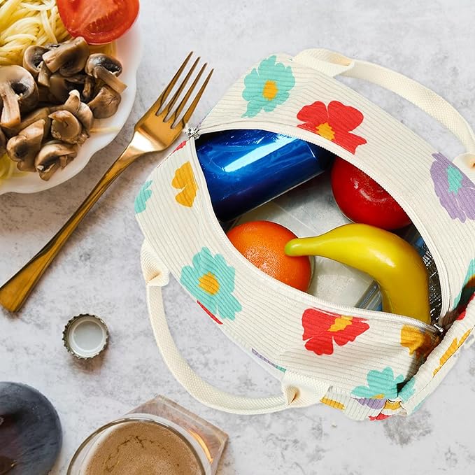 Bluboon Lunch Bag for Women Men Cute Corduroy Insulated Lunch Box Large Capacity Reusable Insulated Cooler for Work Picnic Travel