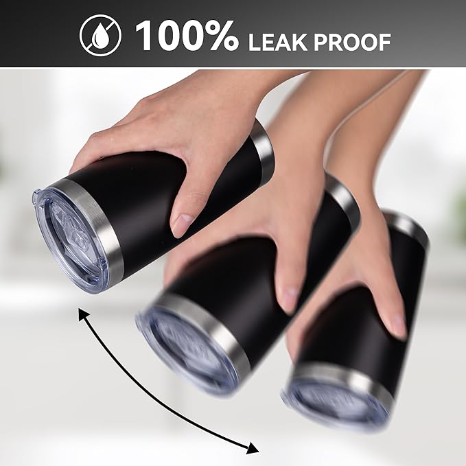 - 18/8 Stainless Steel Tumblers: Our tumbler cups are made of food-grade stainless steel, which makes them rust-resistant and unbreakable for heavy use all year round. The press-on lid is made of BPA-free plastic, which is safe and prevents leaks. These non-toxic tumblers provide a healthy drinking experience.