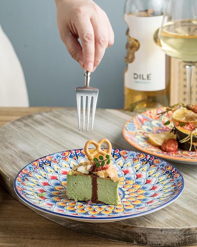 Salad Plate Set of 6, 8.5 Inch Dinner Plates for Salad, Pasta, Dessert,Steak, Appetizers Colorful Bohemian Style Dishes for Kitchen