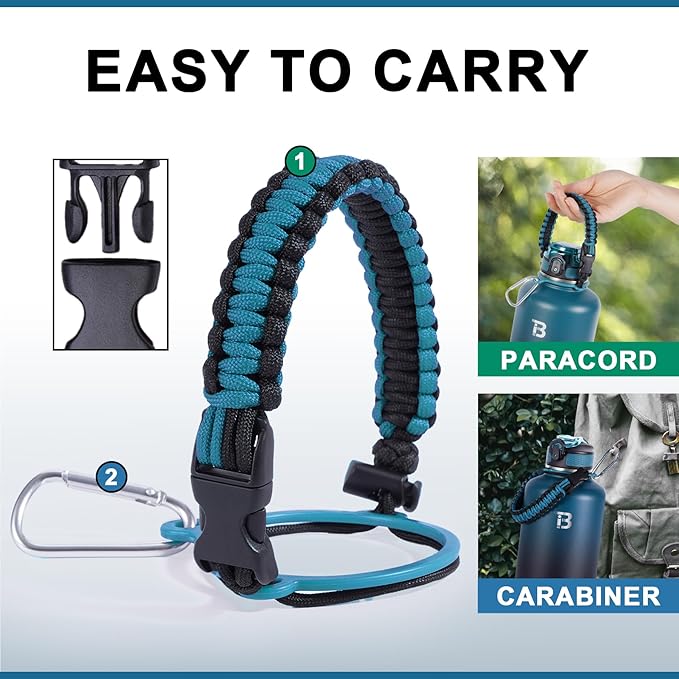- Insulated Water Bottle 64 oz, Double Wall Vacuum Stainless Steel (Cold for 48 Hrs), Leak Proof & BPA-Free, Half Gallon Water Flask Jug with Paracord Handle & Straw Spout Lids