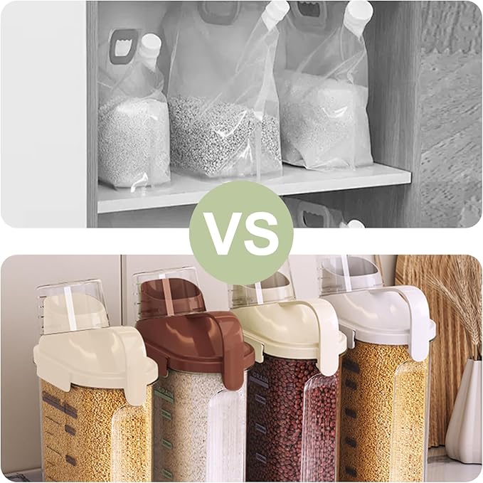 - Upgraded 3-Pack Airtight Food Containers: Organize your kitchen effortlessly! This kitchen dry food storage containers is perfect for cereals, baking essentials, snacks, drink ingredients, and pet food. Crafted from durable PE/PP blend, these containers are thicker, stronger, and long-lasting. Say goodbye to clutter, enjoy cooking!