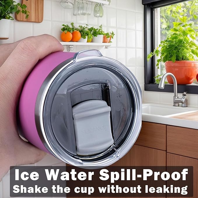 - SILICANICE MACSLIDER:The Only Drink Lid That Uses The Power Of Ball Plunger To Keep Your Water, Beer,Cola,Coffee,Or Favorite Drink On Lock,durable Tritan metrail lid,Sweat Proof, No Condensation,Keep 30 Hours Iced,8 Hours Cold,4 Hours Hot.MacSlider Lid Is not Leakproof with Hot Water But Spillproof,Ice Water is Leakproof.