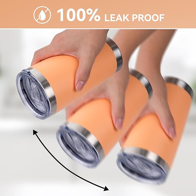 - 18/8 Stainless Steel Tumblers: Our tumbler cups are made of food-grade stainless steel, which makes them rust-resistant and unbreakable for heavy use all year round. The press-on lid is made of BPA-free plastic, which is safe and prevents leaks. These non-toxic tumblers provide a healthy drinking experience.