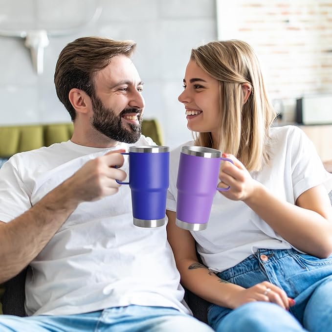 - Stainless Steel Tumblers with Handle:The 20oz coffee mug is made of thickened 304 stainless steel, liner of coffee mug will not produce any taste and will not rust.The cup comes with a sturdy welded handle for easy grip and ease of use