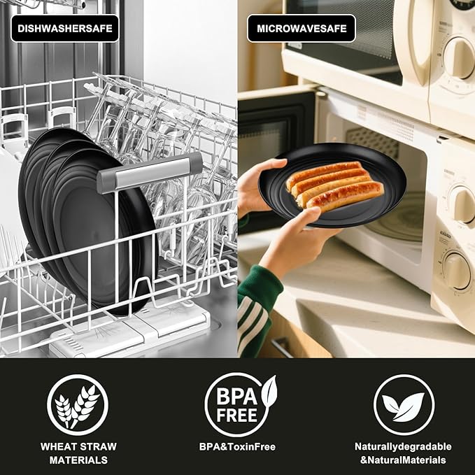 supernal 24pcs Wheat Straw Dinnerware,Unbreakable Dinner Plates Set,Microwave Dishwasher Safe,Black Reusable Plates for Picnic,Birthday,Camping
