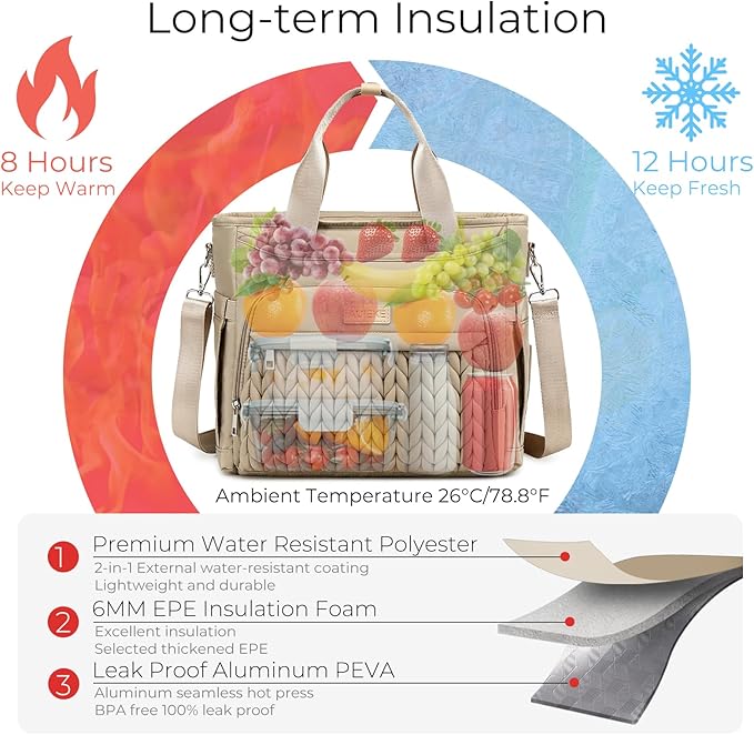 - Special Feature : Adjustable Shoulder Strap, Keeps Food Fresh/Cool for 8-12 Hours, Leak Resistant, Lightweight, Thermal Insulated Adjustable Shoulder Strap, Keeps Food Fresh/Cool for 8-12 Hours, Leak Resistant, Lightweight, Thermal Insulated