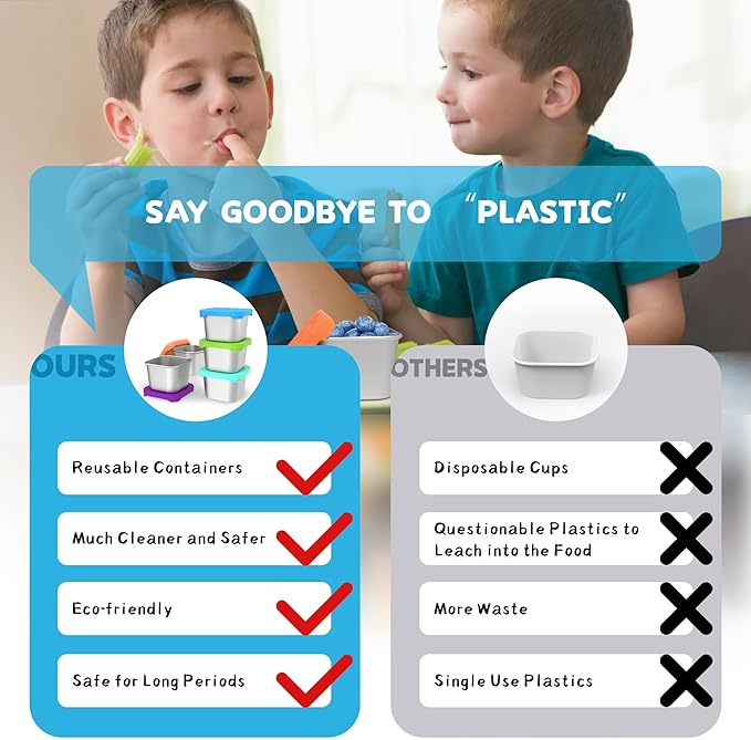 - EASY TO CLEAN & STACKABLE: The stainless steel snack containers with lids feature a stackable design, allowing for neat and efficient storage, saving your fridge or pantry space while keeping your snacks organized and easily accessible; Stainless steel lunch box containers have a smooth interior so that easy to clean and convenient to care, they are dishwasher and freezer safe
