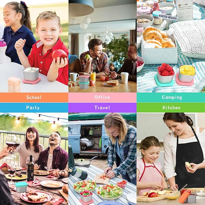 - PORTABLE: Our 6 Sets 6OZ (180ml) metal lunch containers is lightweight for taking. Perfect capacity of bento snack box right for most snacks, fruits, lemon slices, sauces, vegetable, condiments, jam, nuts. Small snack storage containers can help you control food serving and maintain healthy eating habits