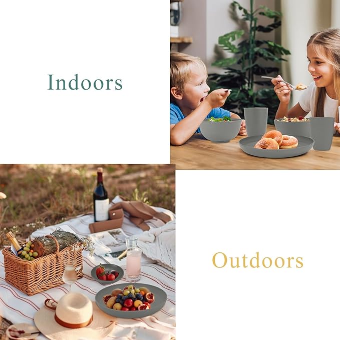 Wrova Wheat straw plates and bowls sets of 16 - Unbreakable wheat straw dinnerware sets for party - Alternative plastic dinnerware set for camping,party and R.V. Grey