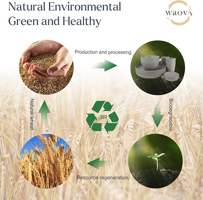 - ā¦ćš£š®š°šøš®š“š² šš»šš¶š±š²ć - Wrova 16pack wheat straw dinnerware sets contains 4pcs 10inches wheat straw plates with deep edge,4pcs 26oz wheat straw bowls,4pcs 12oz wheat straw cups,4pcs sauce plates. All of them are unbreakable,bpa and lead free,lightweight and easy to clean.