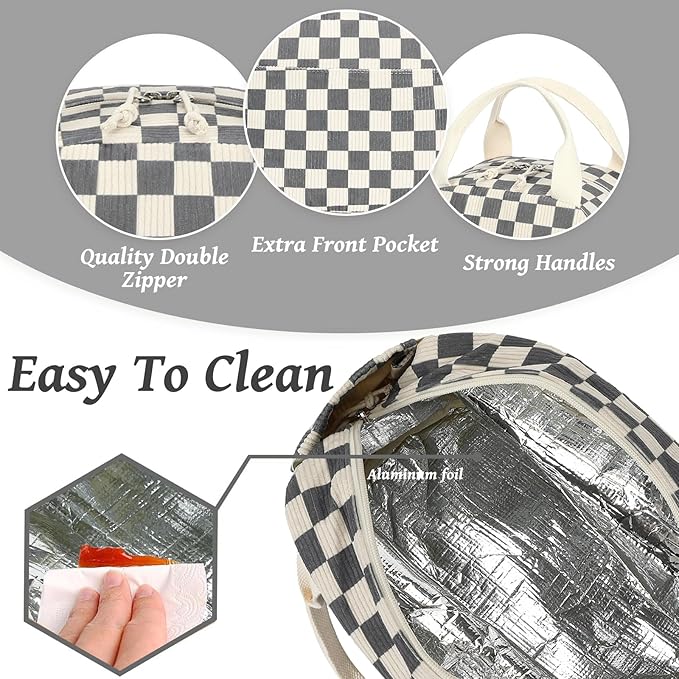 Bluboon Lunch Bag for Women Men Cute Corduroy Lunch Tote Bags Reusable Insulated Lunch Box Large Capacity Reusable Insulated Cooler for Work Picnic or Travel